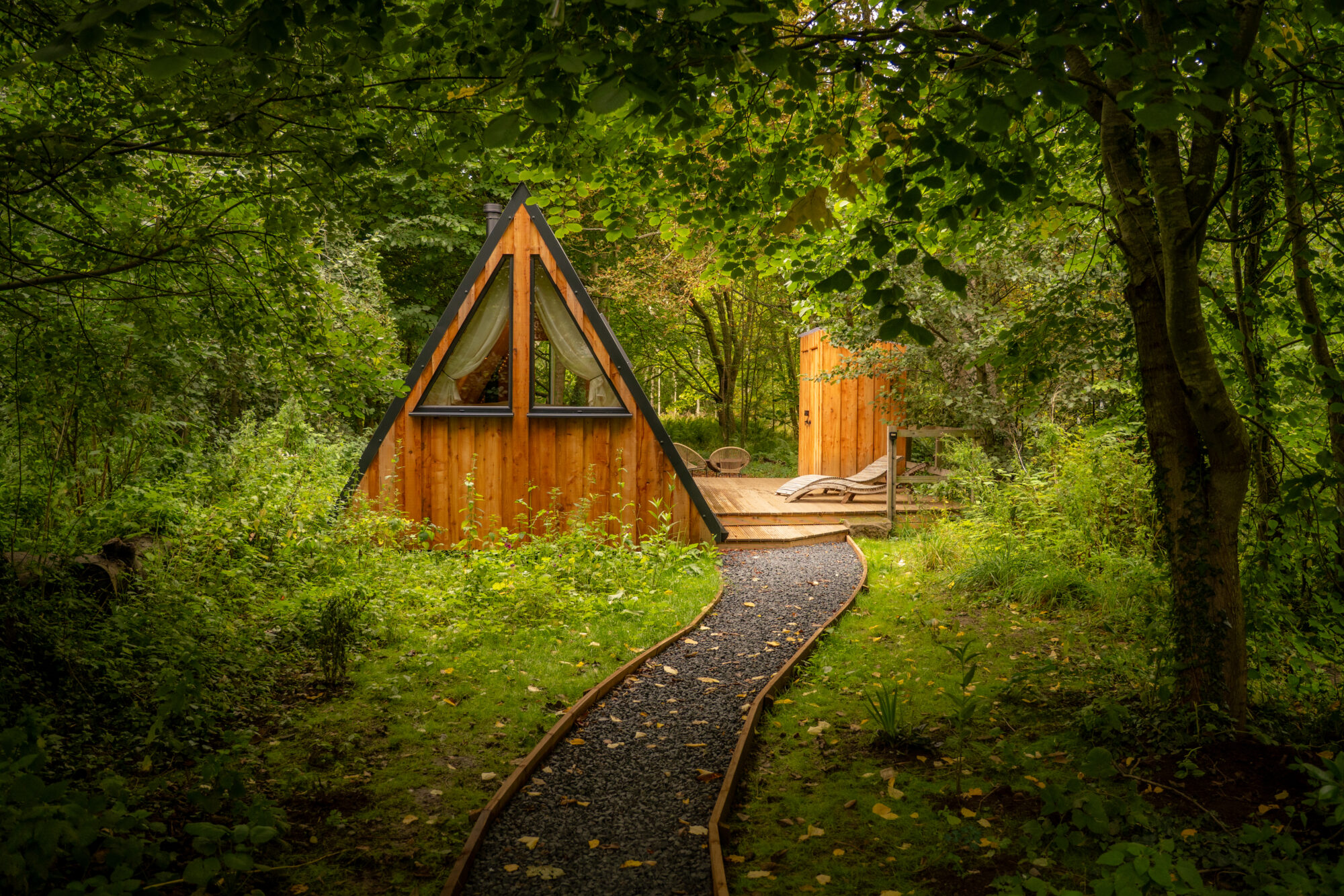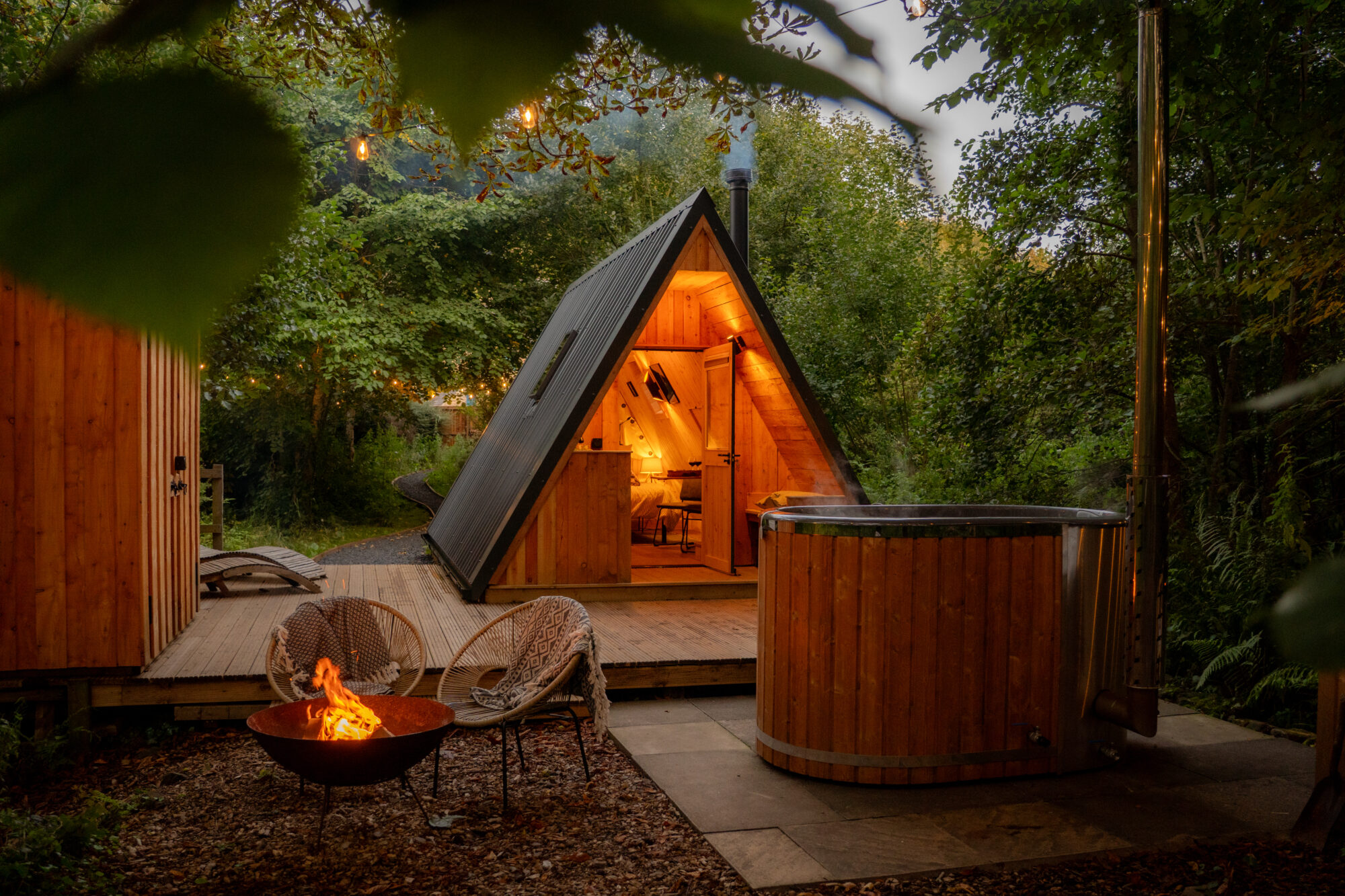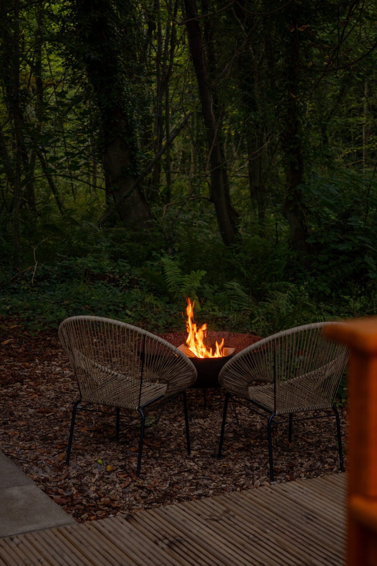 A beautiful woodland setting, birdsong all day and nature literally at your doorstep. The area is not fenced in so we ask guests to keep dogs close by. There is a firepit and a BBQ and a wood fired hot tub that more than comfortably sits 2 people. The hot tub also had LED lights and Hydro Jets to massage your weary muscles!