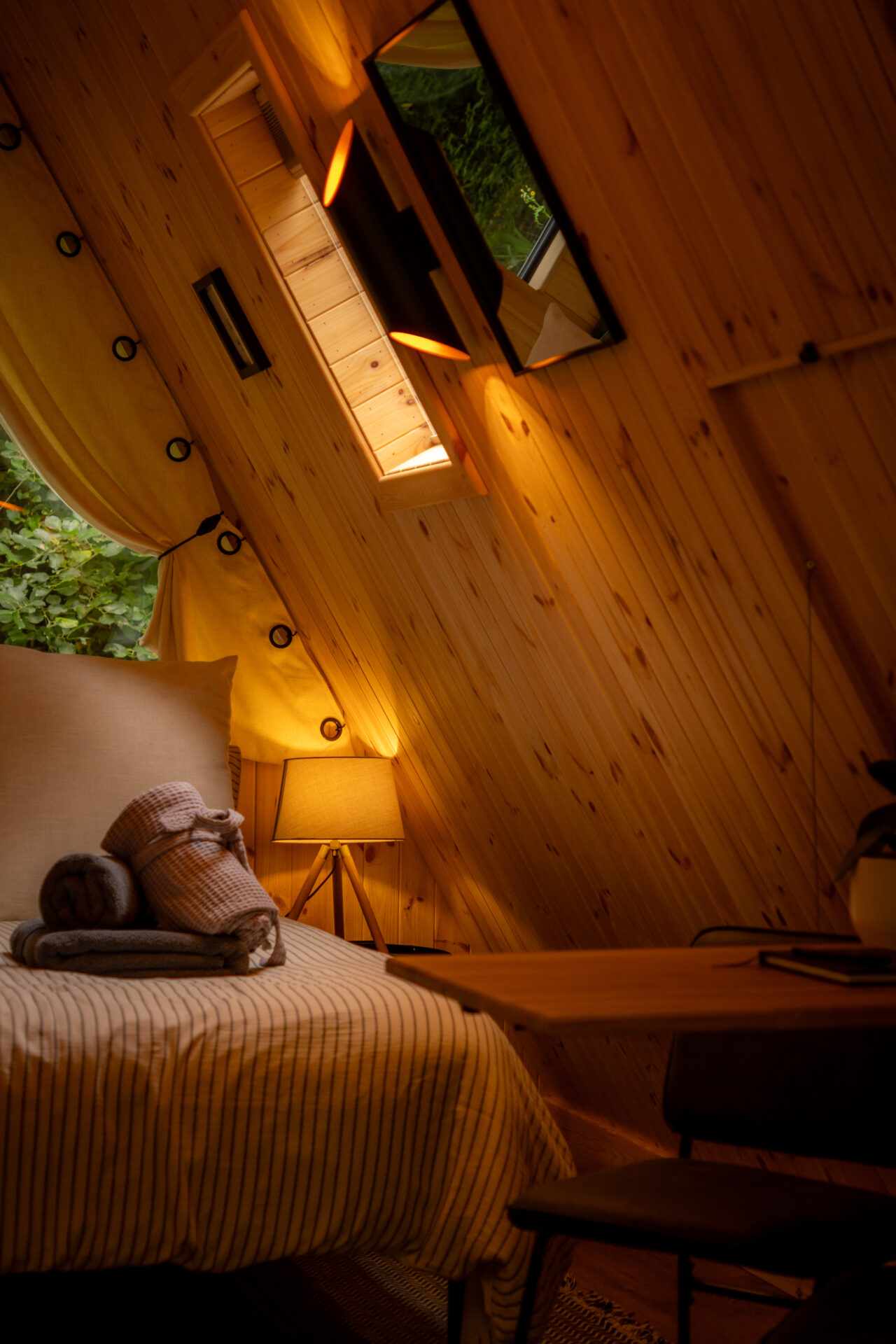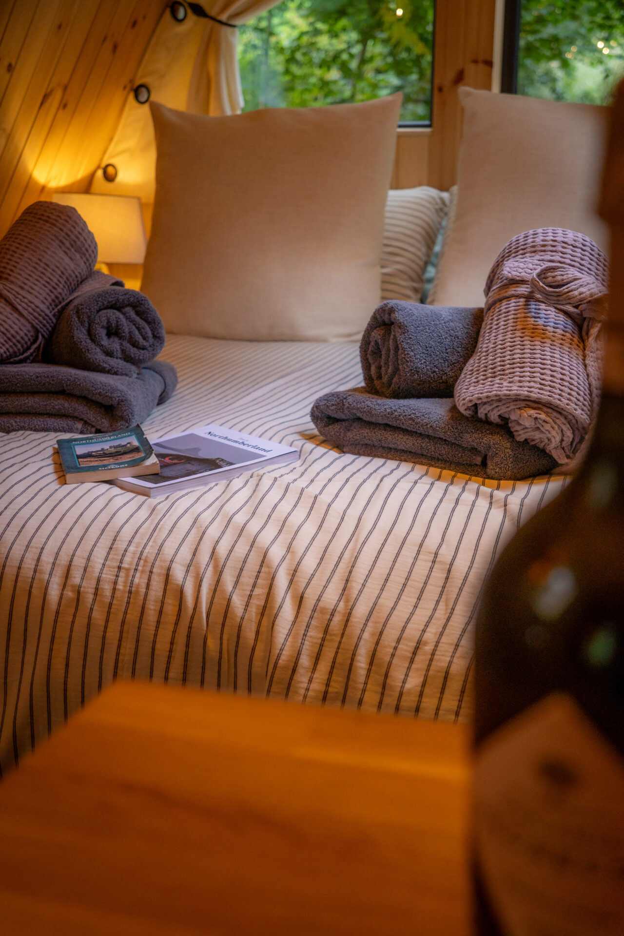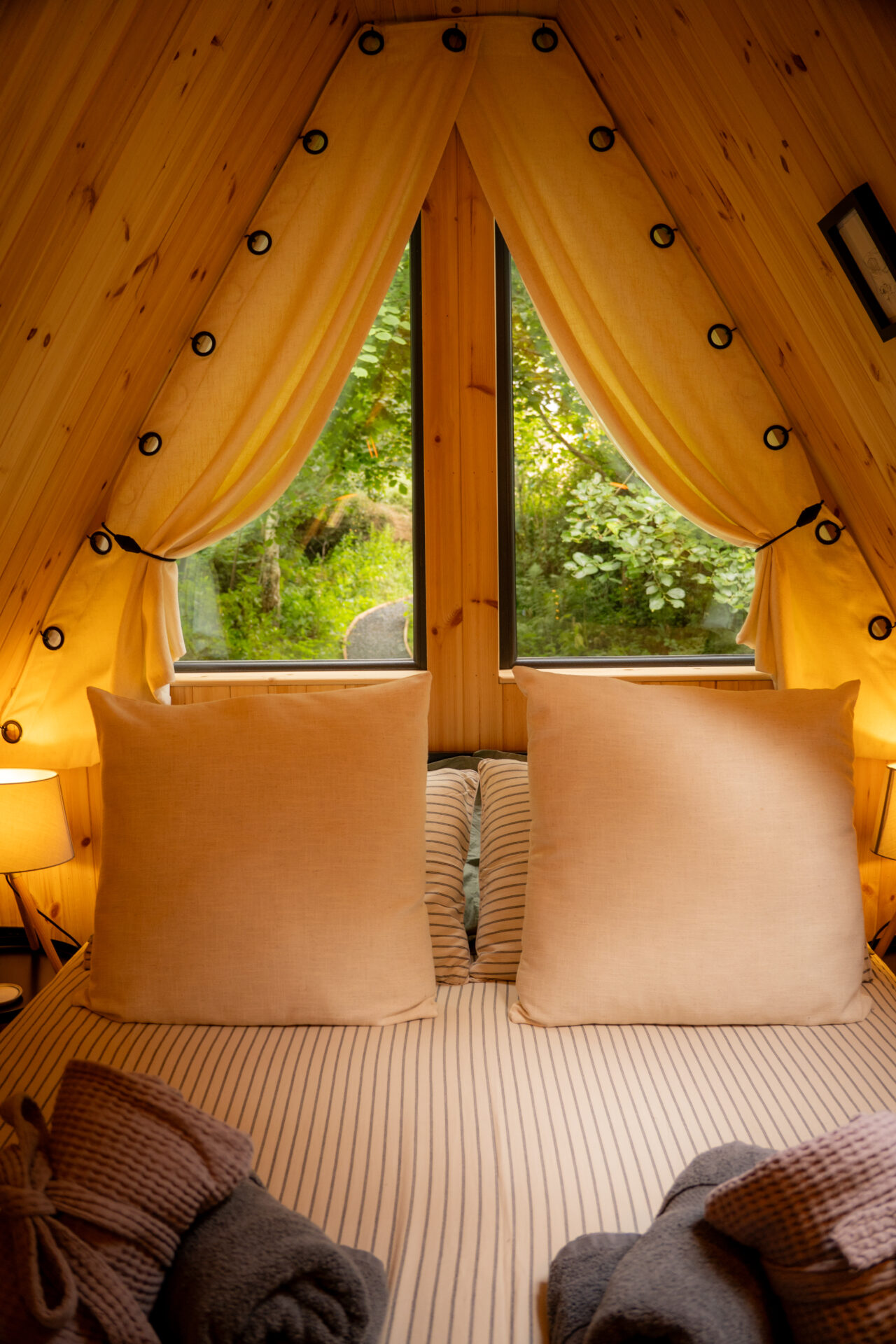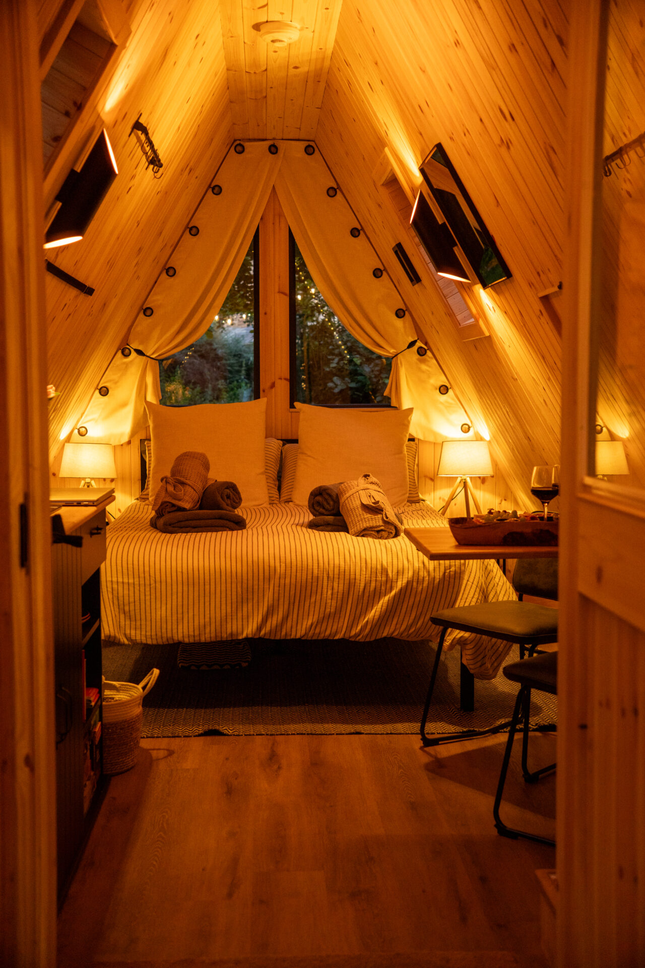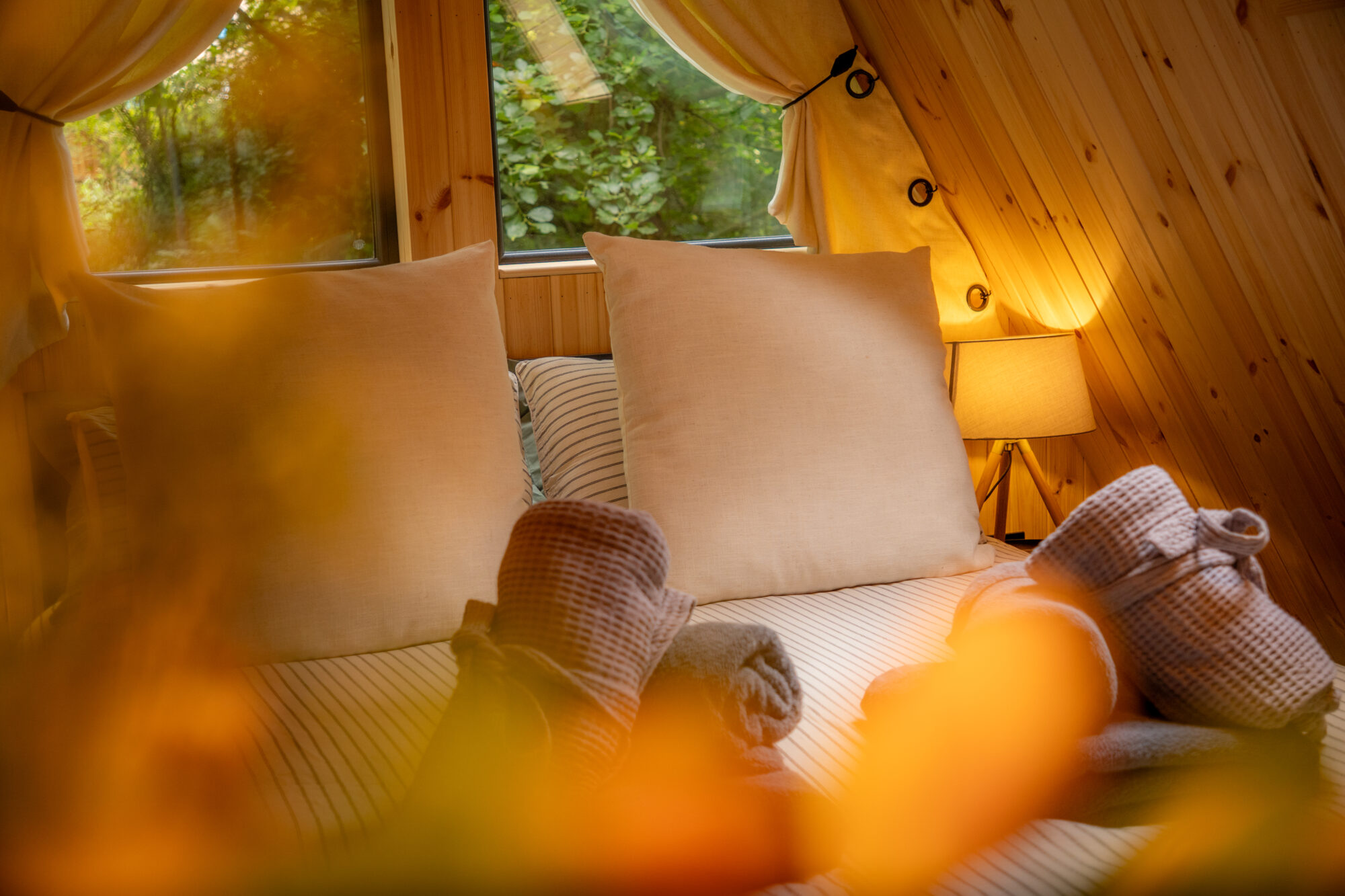 We are dog friendly and we do not charge you an extra fee to bring you dog/s with you. We only ask you consider the size of the space as per how many you are bringing, and also consider that once you go through your gate you are part of the woodland expanse. Please do not let dogs run away or chase wildlife. Finally, if you cannot keep your dog off the bed please bring your own bedding or a large blanket if it’s just to cover the risk of them going on. The bedding is high quality and the woods can get very muddy!